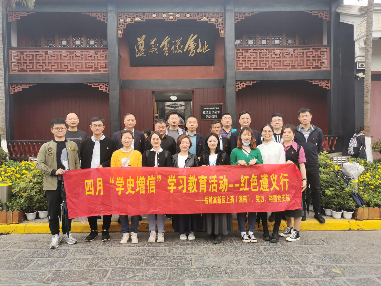 “欲知大道,必先为史”。百年党史,是一部丰富生动的教科书,也是民族的精神“富矿”。学习党史是共产党人的必修课,在新发展阶段创造更大发展奇迹,要从这座“富矿”中汲取砥砺奋进的力量。在建党百年之际,湖南致力工程科技有限公司党支部与上药控股(湖南)有限公司党支部、长沙市联丰裕园物业党支部组成的党史学习教育小组在岳麓高新技术产业开发区工作委员会领导的陪同下,于4月23日至25日,走进遵义,参观遵义会议旧址,登上娄山关战斗遗址,追寻红色历史,听取书记现场讲党课,在接受革命传统教育中,坚定理想信念、汲取前进动力。