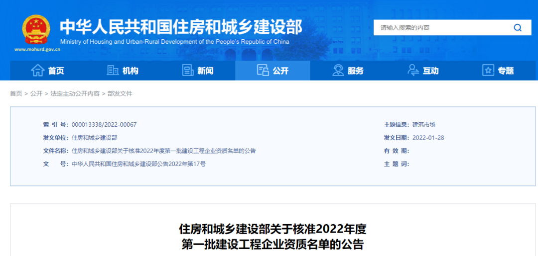 中华人民共和国住建部发布《关于核准2022年度第一批建设工程企业资质名单的公告》,湖南致力工程科技有限公司喜获工程(岩土)勘察甲级资质……