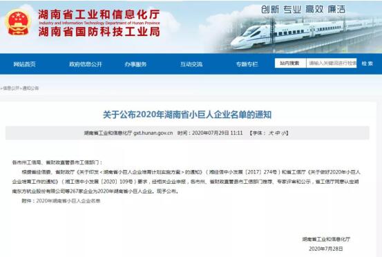近日,据湖南省工业和信息化厅、湖南省国防科技工业局官网发布的《关于公布2020年湖南省小巨人企业名单的通知》,湖南致力工程科技有限公司首次申报并成功入选获批。